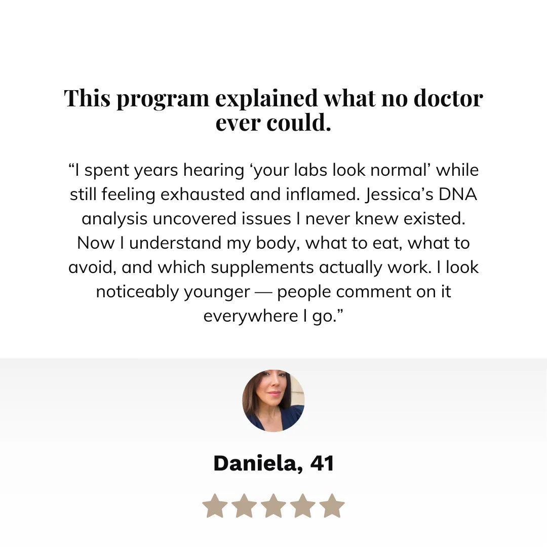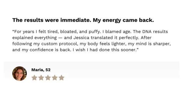DNA-aligned nutrition + anti-inflammatory strategies tailored to your genetics to restore cellular efficiency and repair capacity.