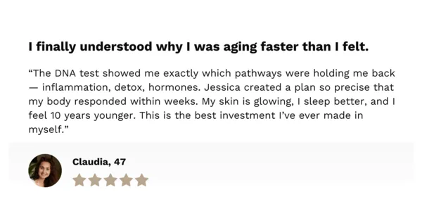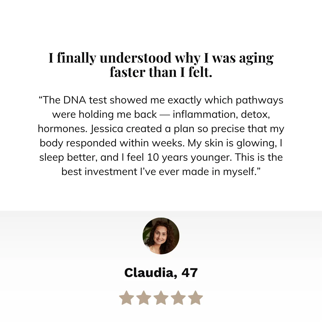 In-depth genetic analysis + clear explanation of your inflammation, hormone, and aging pathways — so we know what to prioritize.