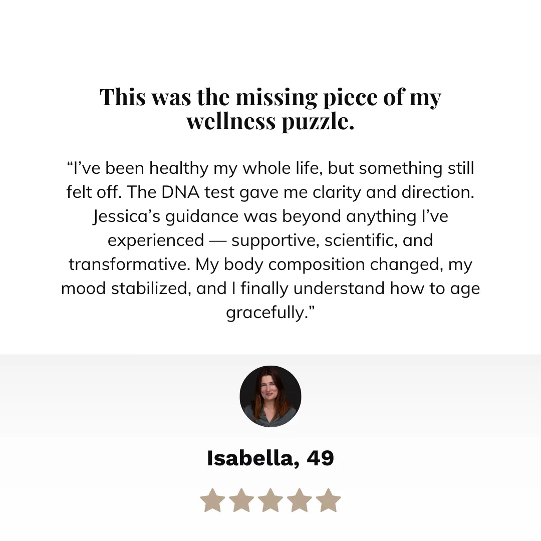 Inside this private 6-month partnership, we use your genetic blueprint to make your next chapter your most radiant — with a plan that finally fits your body
